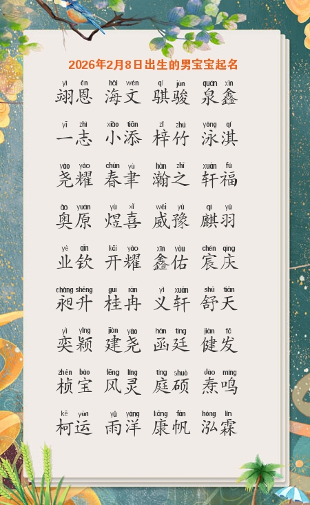 2026年2月8日宝宝五行属性查询 相关文章